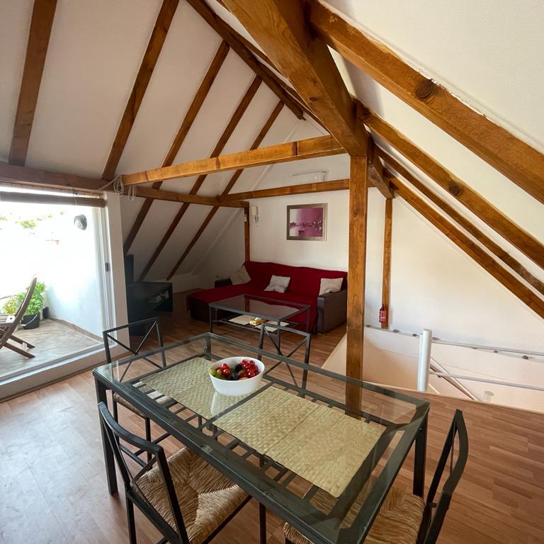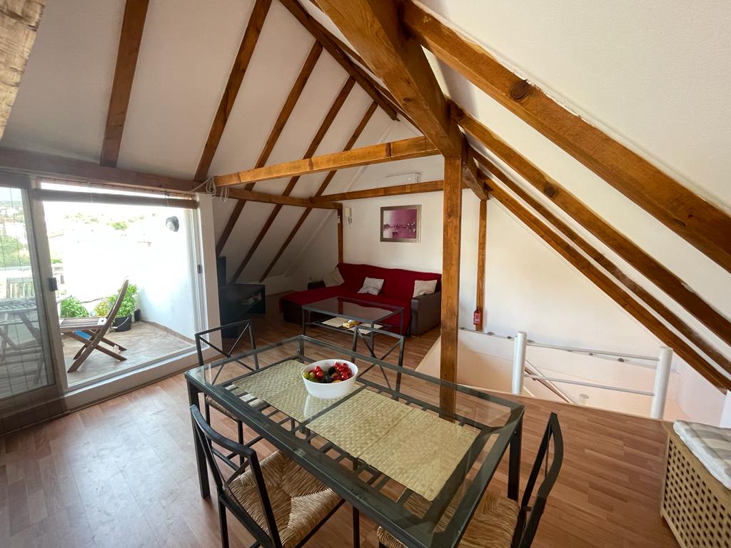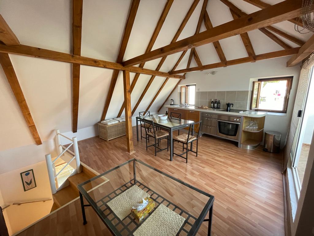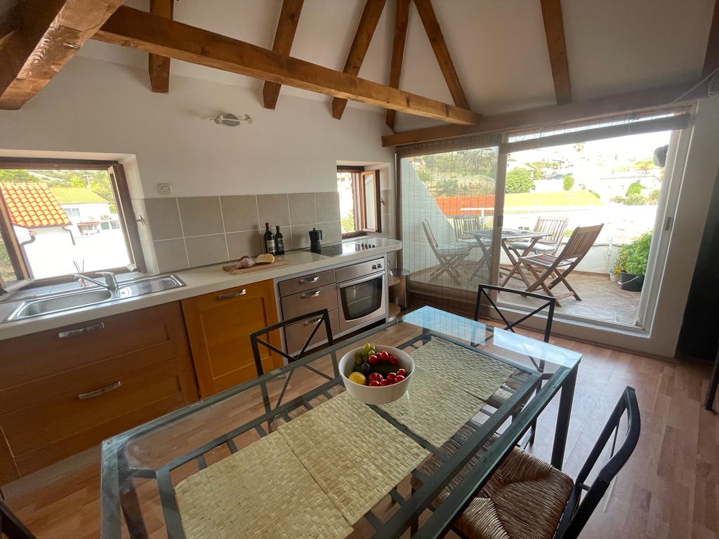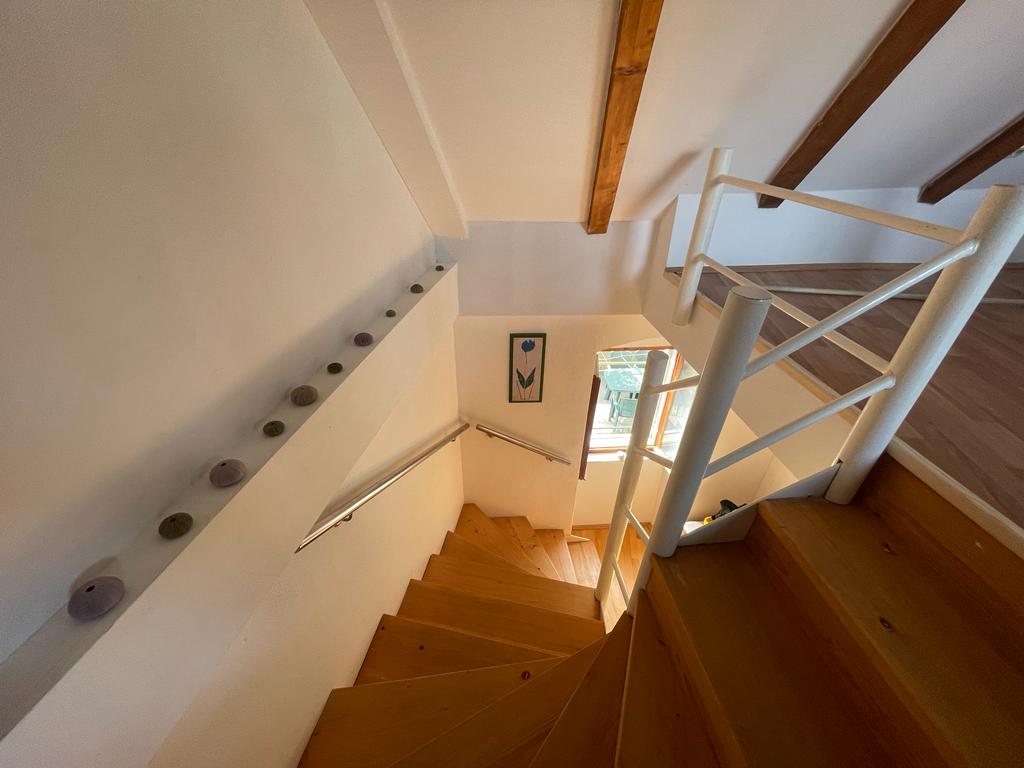 Another staircase leads to the second floor, where there is an open-plan living room with a dining area, an Italian kitchen, and a roof terrace with incredible views.
